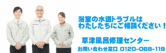 草津風呂修理センターは草津市の浴室修理専門業者です。シャワーの水漏れ、水圧が弱い、排水溝の流れが悪い、水栓の交換がしたいなどお気軽にお問い合わせください。